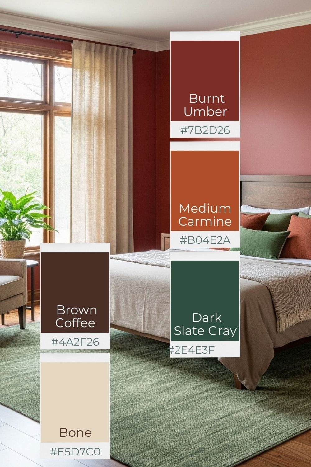 Rich, moody palette for bedroom and accent walls.