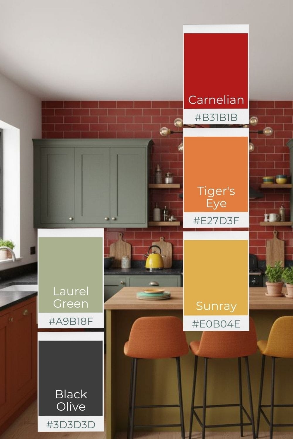 This color palette is vibrant and festive—great for kitchens where you can enjoy warm, lively gatherings.