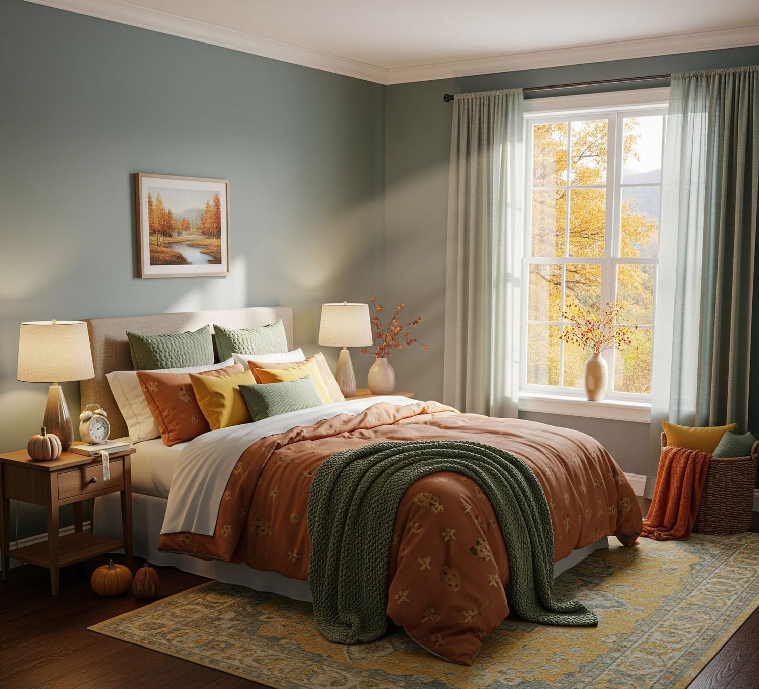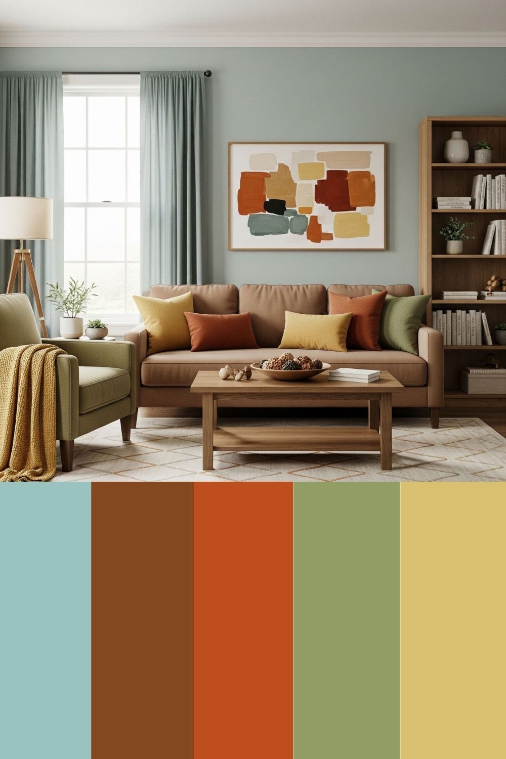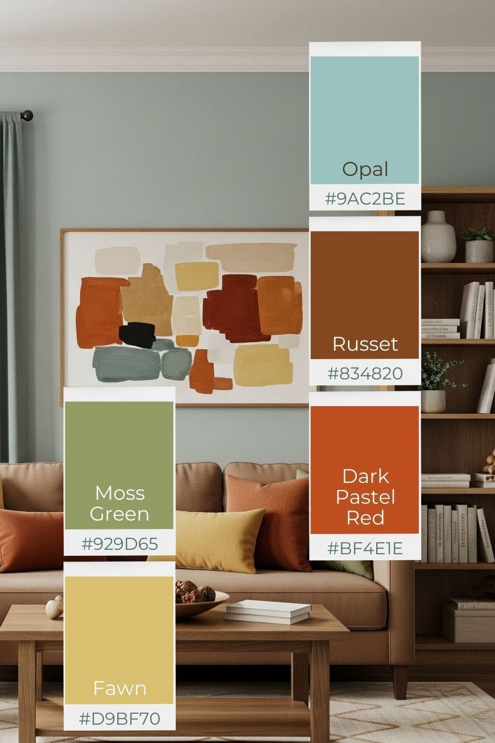 Color is the soul of a room, and the right palette can instantly transform any space into a sanctuary. This autumn-inspired blend of opal, russet, dark pastel red, moss green, and fawn brings balance, warmth, and timeless elegance to interiors.