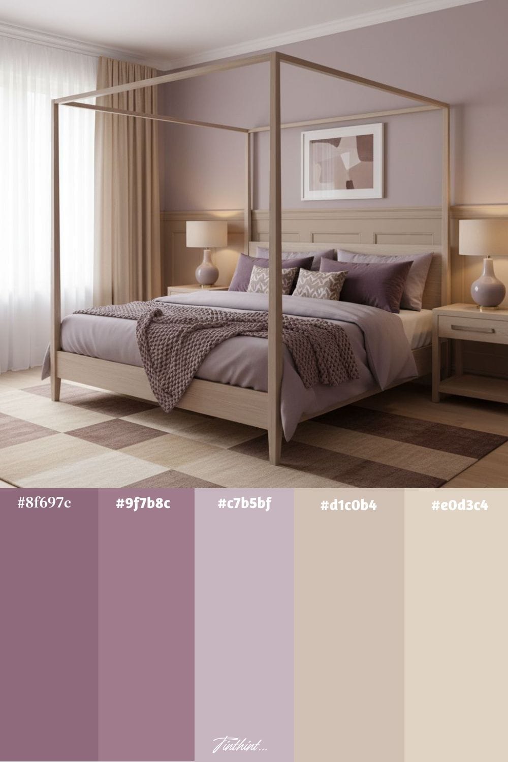 Plum purple and beige create a rich yet balanced look for a bedroom, blending drama with softness. Plum purple brings depth and luxury through bedding, accent walls, or statement furniture, while beige keeps the palette calm and grounded with neutral tones in rugs, curtains, or wardrobes.